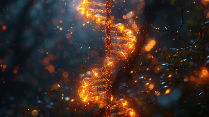 Digital dna strand amidst glowing particles