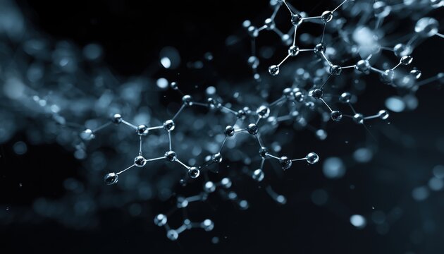 macro view of futuristic molecular structure, carbon atoms connected by nanotubes, dark science background