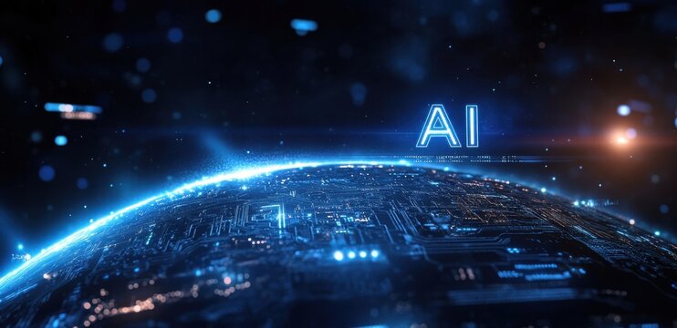 Artificial intelligence concept with glowing Earth and circuit patterns