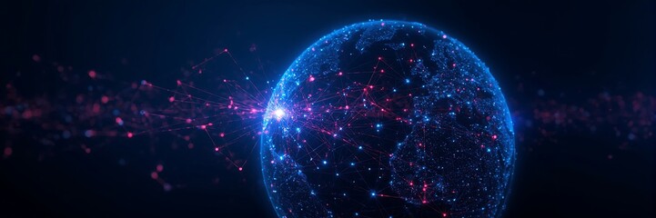 Abstract digital earth with glowing particles and light effects, symbolizing global network, data connection, and futuristic technology concept