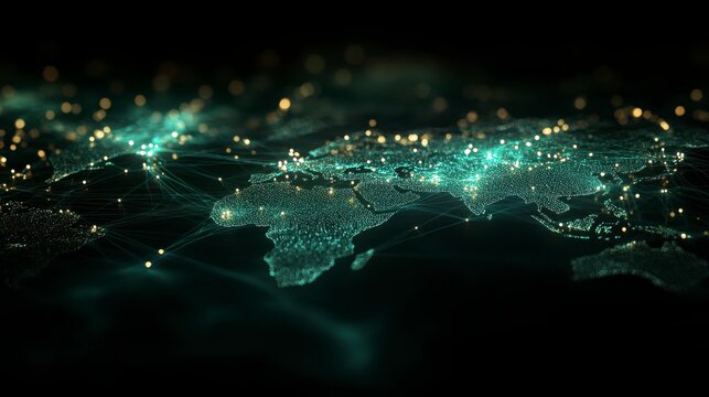 High-tech global network connection interface showing worldwide digital communication, data exchange, and internet connectivity. Global connection, data interaction, and worldwide communication. Thunk