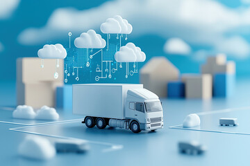 digital representation of truck with cloud computing elements, symbolizing modern logistics and data integration transportation. image highlights connection between technology and delivery systems