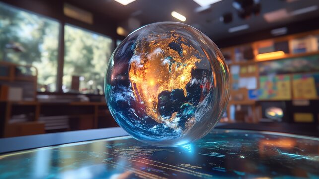 Holding a digital globe representing educational technology and global connectivity in modern learning environments