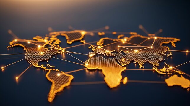 Digital connection and global network visualization with world map overlay