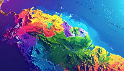 Colorful 3D terrain map with network of lines