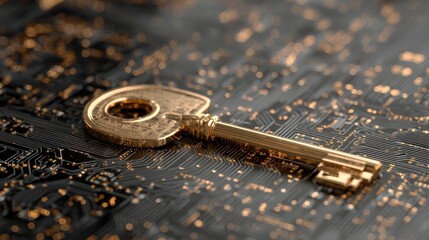 Digital shields glow on circuit board. Cyber security and data protection symbolized by tech hardware. Computer network defense and system safety abstract.