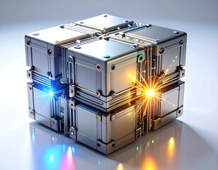 A next-gen modular quantum processor sculpture made of interlocking ceramic-and-anodized-aluminum blocks