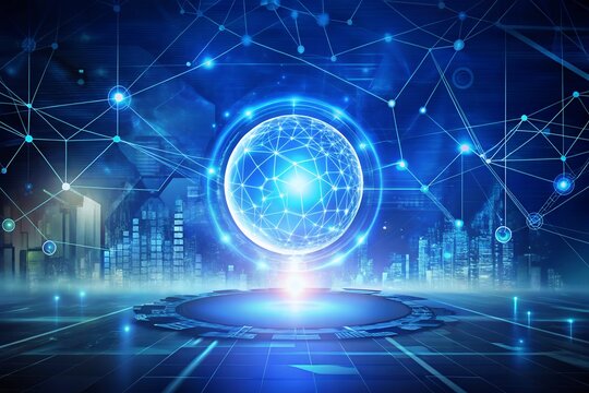 Blockchain technology concept with diagram of chain and encrypted blocks.businessman hand using tablet computer and server room background