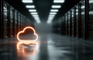 Cloud computing concept in illuminated server room environment