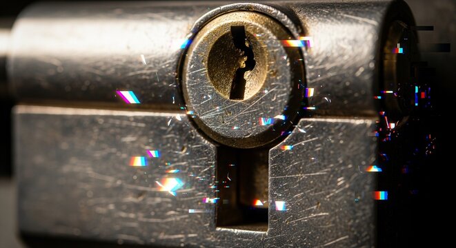 Cyber Security Lock with Glitch Artifacts Symbolizing Hacking Attempt