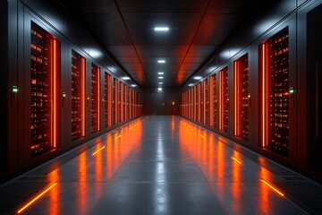 Glowing data processing in modern server room
