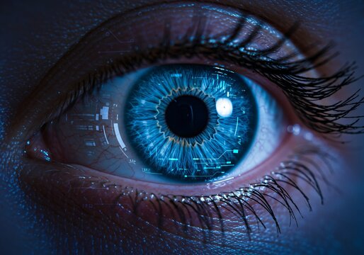 Digital Eye With Data Overlay In High Tech Interface Images