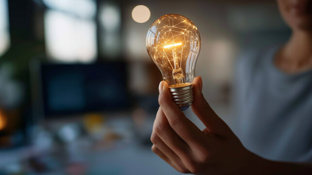 Hand pointing at data visualization with lightbulb pattern discovery insight creative analytics digital marketing intelligence dashboard visible face not shown professional