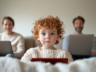Warm Family Learning Hub Cozy Knitted Textures in Bright Home Setting - Secure Digital Education for Children and Remote Work Integration for Modern Family Dynamics