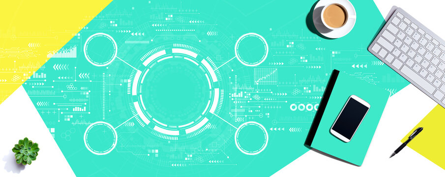 Tech circle with computer keyboard and office items