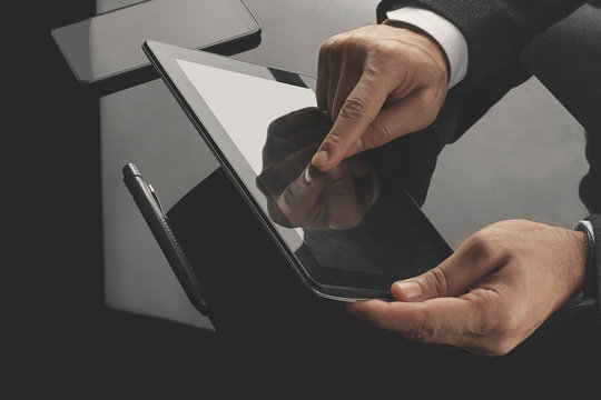 Businessman working in the office with communication equipments