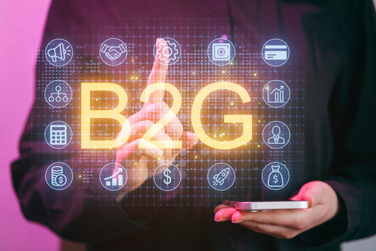 Business to government service interaction shown through a digital interface by a person holding a mobile device