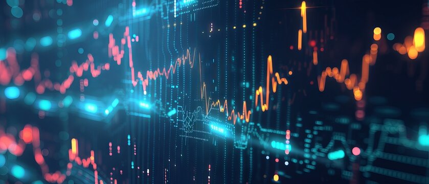 Abstract image of financial data and stock market analysis with colorful graphs and charts, representing economic trends and market fluctuations.