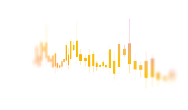 Futuristic digital financial data chart with glowing orange bars and points representing stock market trends on dark background