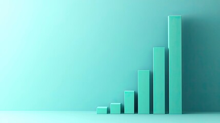 3D render of a green graph bar growing upwards on a blue background