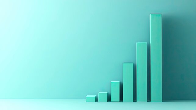 Vibrant 3D rendered financial data growth concept with upward trending bar charts and mobile phone analytics