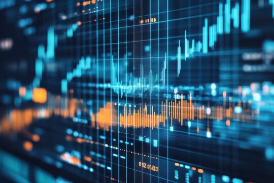 Digital graph displaying financial data with glowing elements and grid background.