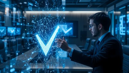 Digital Marketing and Advertising Strategy Concept with Businessman Analyzing Financial Data on Futuristic Interface