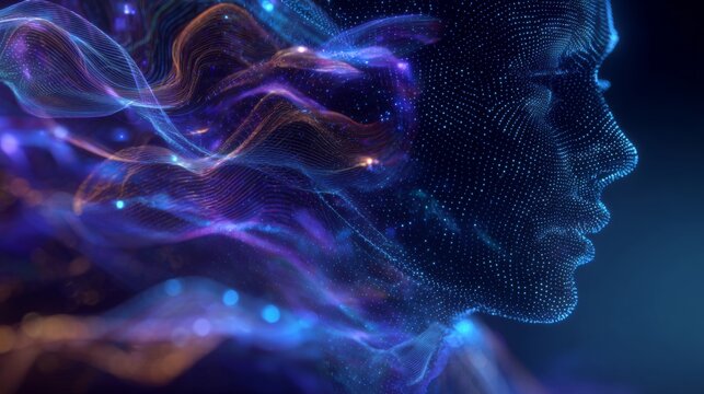 Gradient waves in motion highlighting digital engineering. Data visualization. Soothing flow of abstract particles in soft purple hues. Financial planning. Risk assessment.