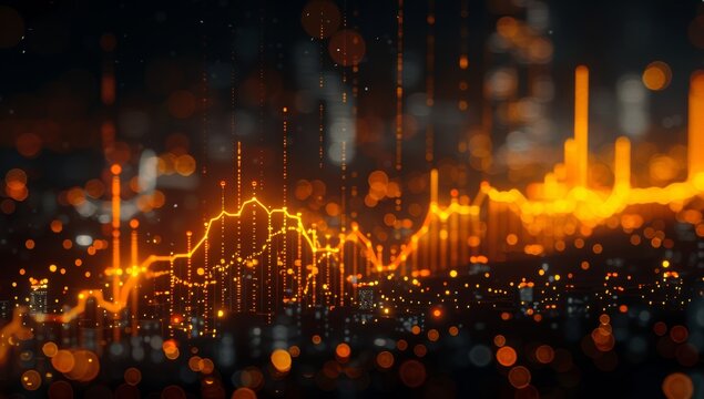 A stock market graph with orange and black lines, representing the financial performance of a company over time. The background is blurred to focus on the detailed upward trend in the trading data.