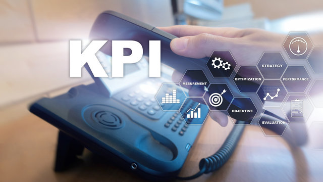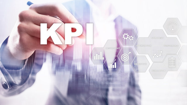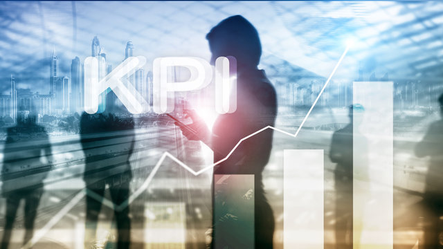 KPI - Key Performance Indicator. Business and technology concept. Multiple exposure, mixed media. Financial concept on blurred background.