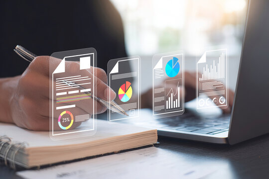 Document management concept, check electronic documents on digital documents on virtual screen Document Management System and process automation to efficiently document paperless operate