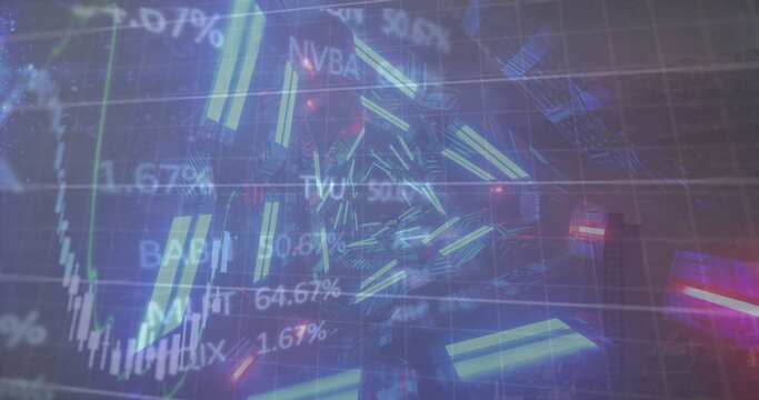 Digital financial data processing with futuristic graphics