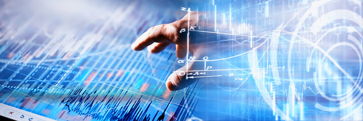 Digital financial data with statistics and charts overlay