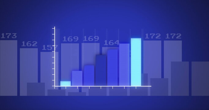 Statistical data processing and russian rubble symbol over a round scanner against blue background