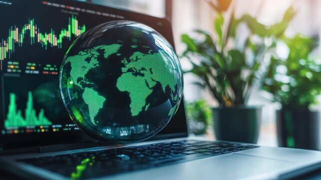 Stunning visualization representing financial growth and market trends over Earth. This image combines charts and data analytics to illustrate dynamic economic changes. Scalp