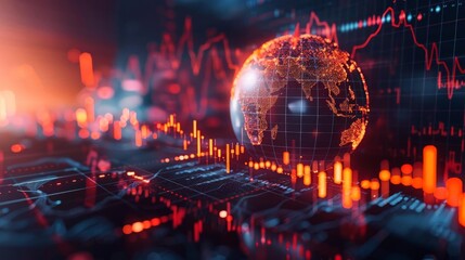 Digital financial data visualization on earth globe