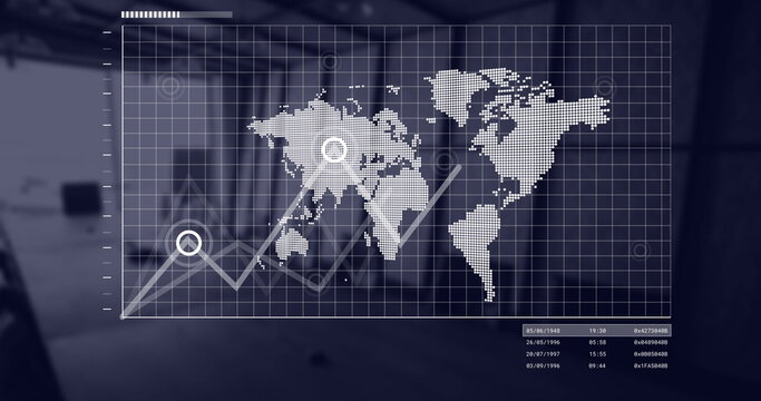 Digital Financial Data Visualization Over World Map Images