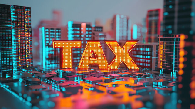 Vibrant digital cityscape with financial data visualizations.