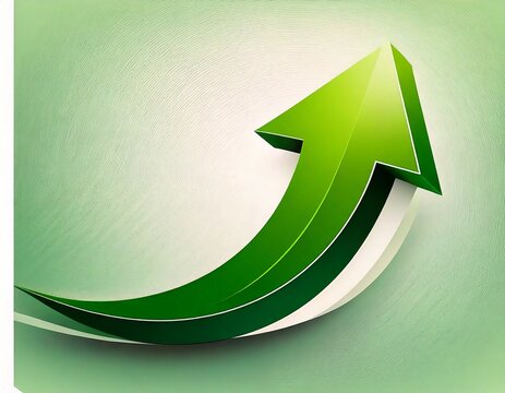 Green curved graph with arrow icon. Arrow illustration pointing up. Counterclockwise