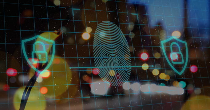 Image of padlocks and fingerprint over cityscape