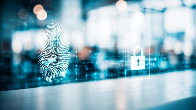 Secure digital identity with fingerprint biometrics on a futuristic transparent screen