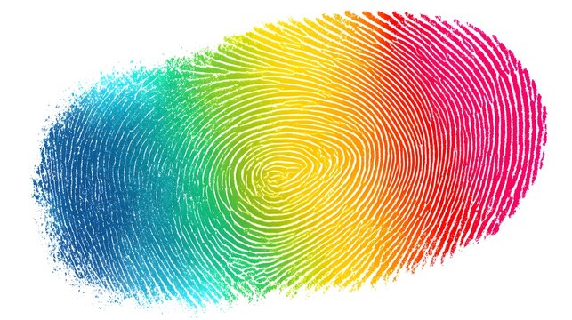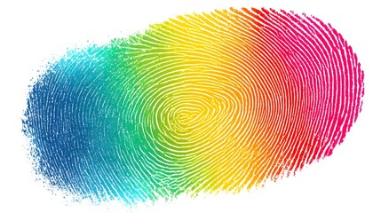 Vibrant rainbow fingerprint pattern stands out against a plain white background