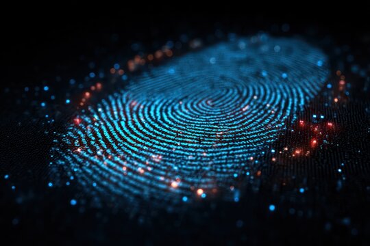 Digital fingerprint scan on high-tech interface for cybersecurity