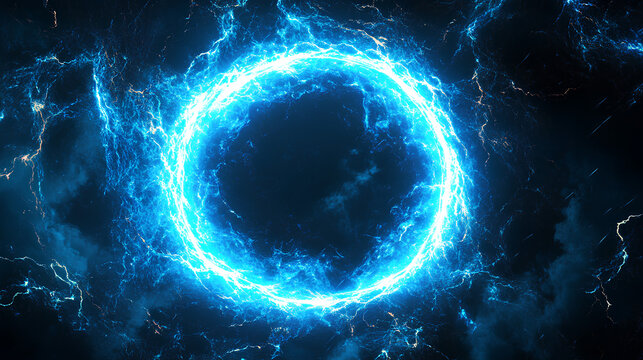 glowing electric blue lightning round frame with plasma portal, isolated on transparent layer overlay or black background