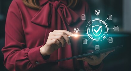 Cybersecurity Shield Interface: Digital Protection with Target Emblem and Futuristic Circular Design