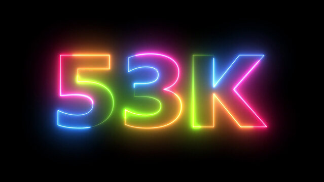 Vibrant Neon 53K Text Animation Bright Glowing Outline on Dark Background for Digital Milestones