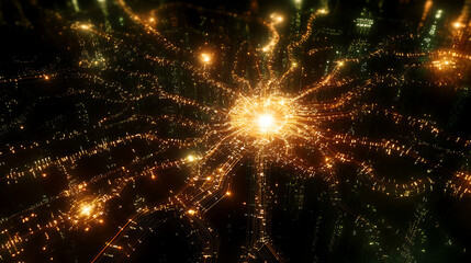 A digital forecast of human innovation, glowing circuits branching infinitely outward.