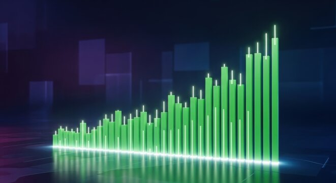3D Rendering of Growing Financial Chart with Candlestick Diagram on Digital Forex Market Screen, Highlighting Investment and Stock Market Trends, Generative AI