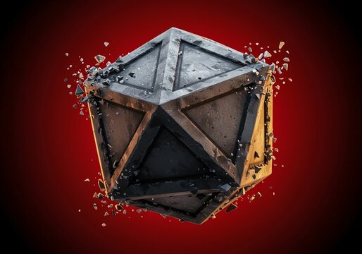 Abstract illustration of a fragmented geometric shape with dynamic visual impact