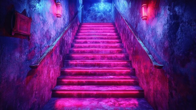 Cyberpunk basement workshop, neon lights, grunge, pipes, machinery